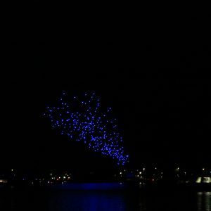 Sinds ik de openvouwende zijden bloemenlampen in het Rijksmuseum zag, ben ik een groot fan van Studio Drift. Hun werk verbindt techniek/technologie met de natuur en het brengt mij steeds in verrukking. Hun tentoonstelling in het Stedelijk zag ik al vier keer. En vandaag keken we op de kade van het Westerdok naar de vlucht van de drones. Honderden drones boven het IJ, die de vlucht van spreeuwen imiteerden. Het was bijzonder om zo met ons allen aan de rand van het water te zitten in afwachting van wat er te zien was. Het was mooi om te zien (die foto’s zeggen echt helemaal niets…). En ik ben er sterk voor dat Studio Drift het eindejaarsvuurwerk gaat verzorgen. Met drones. Dat scheelt een hoop paniek onder de vogels.